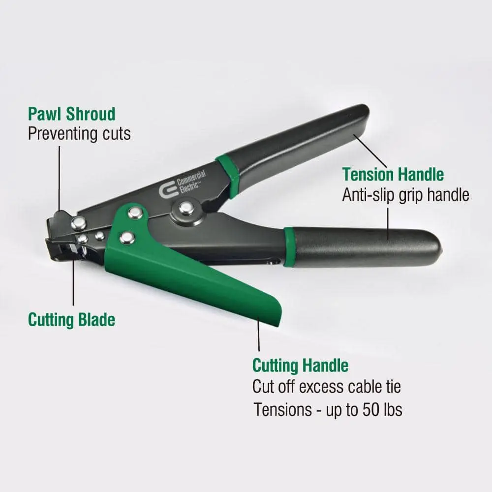 The Commercial Electric Cable Tie Tensioning Tool is a versatile and reliable tool designed for professional and DIY projects. It features efficient tensioning to ensure precise tightening of cable ties and a built-in cutting mechanism that trims excess material for a clean and polished finish. Constructed with a durable build, it delivers long-lasting performance, even in demanding applications. The ergonomic handle provides comfort during extended use, while its lightweight design makes it easy to handle and operate. Perfect for electrical, automotive, and general tasks, this tool is an essential addition to any toolkit