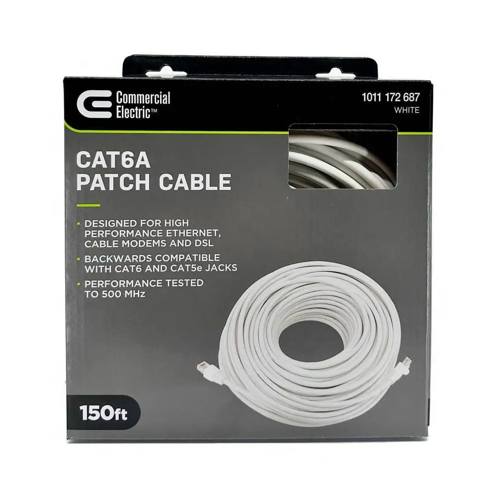 The Commercial Electric Cat6A UTP Ethernet Cable delivers high-performance connectivity for a wide range of LAN network components, including PCs, servers, printers, routers, gaming consoles, switch boxes, network media players, NAS, VoIP phones, and PoE devices. Designed for high-speed, reliable performance, it ensures stable connections and is backward compatible with Cat6 and Cat5e jacks.