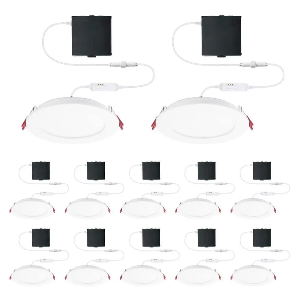 Commercial Electric Ultra Slim Recessed Lighting Kits are designed for modern spaces, perfect for areas with limited height clearance, such as beams or ductwork. With an integrated color-changing switch on the cable, you can easily select between 3000K, 4000K, or 5000K color temperatures to suit any need—3000K for relaxing, 4000K for everyday tasks, and 5000K for bright, focused lighting. ENERGY STAR certified and Insulation Contact rated, these lights are safe for direct contact with insulation, won't overheat, and eliminate the need for bulky cans. With a 50,000-hour lifespan (approximately 34 years with 4 hours of use per day), these wet-rated and airtight lights are ideal for bathrooms, drop ceilings, outdoor soffits, larger rooms, and general lighting applications.