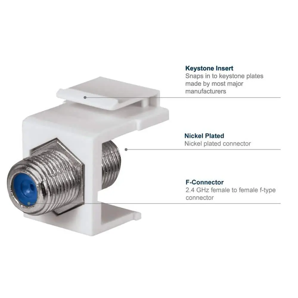 The Commercial Electric Twist-On F-Connector - White is a reliable solution for coaxial cable connections in audio, video, and cable TV applications. Made with durable construction, it ensures long-lasting performance and stable signal transmission. The twist-on design allows for quick and secure installation without the need for additional tools. With its white color, this connector provides a clean and professional appearance, making it a perfect choice for both home and professional setups