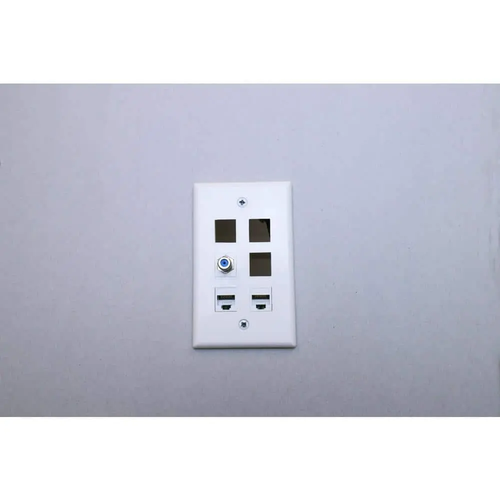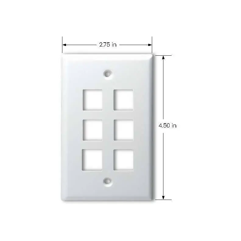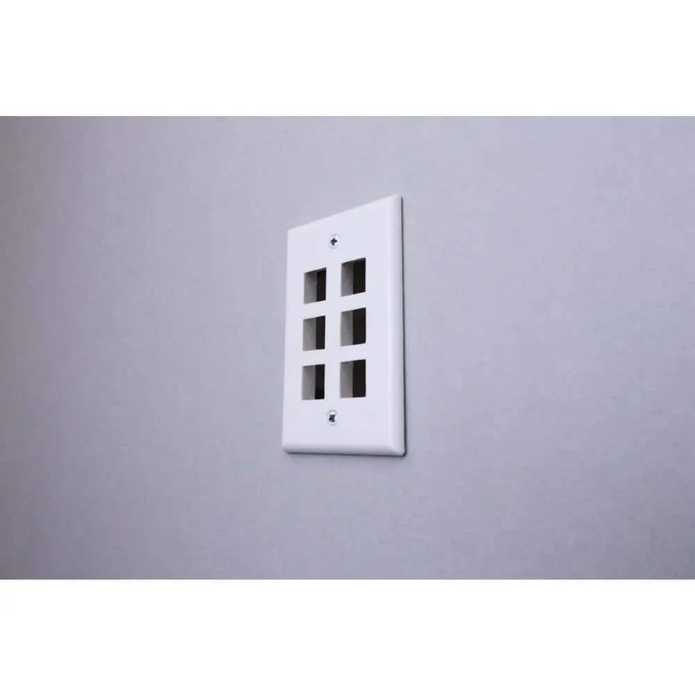 The Commercial Electric 6-Port White Keystone Wall Plate allows for seamless integration of multiple keystone components at a single wall location. Ideal for applications such as high-speed internet, satellite TV, DVRs, and more. Includes mounting screws for easy installation.