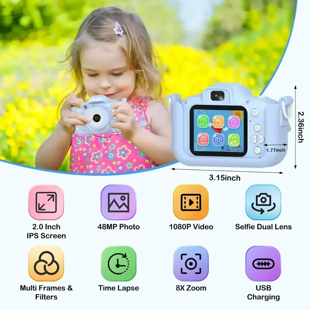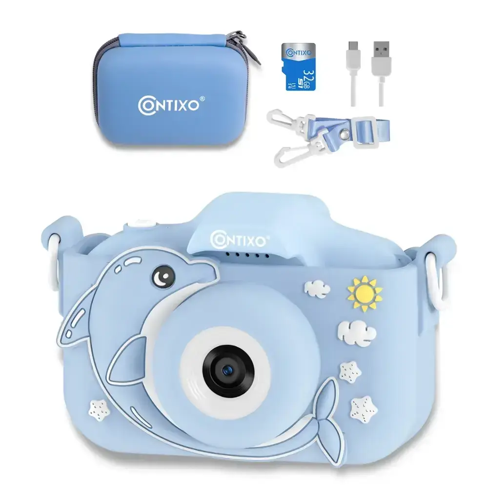 The Contixo KC3 Kids' Camera is a fun and durable choice for young photographers, inspiring creativity in children ages 3-5 while doubling as an engaging learning tool. Its sturdy silicone cover protects against drops and bumps, making it perfect for active play.