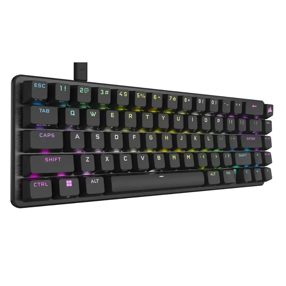 The CORSAIR K65 PRO MINI RGB 65% Optical-Mechanical Gaming Keyboard offers a 65% compact layout, saving desk space while retaining essential keys for gaming. Featuring optical-mechanical OPX switches, it provides fast and responsive performance, enhancing your gaming experience. The RGB backlit LED allows you to customize the lighting effects with vibrant colors, creating a dynamic atmosphere. Built with durable construction, this keyboard is designed to withstand intense gaming sessions. The sleek black finish adds a modern touch, and the hot-swappable design makes it easy to customize the switches without any soldering