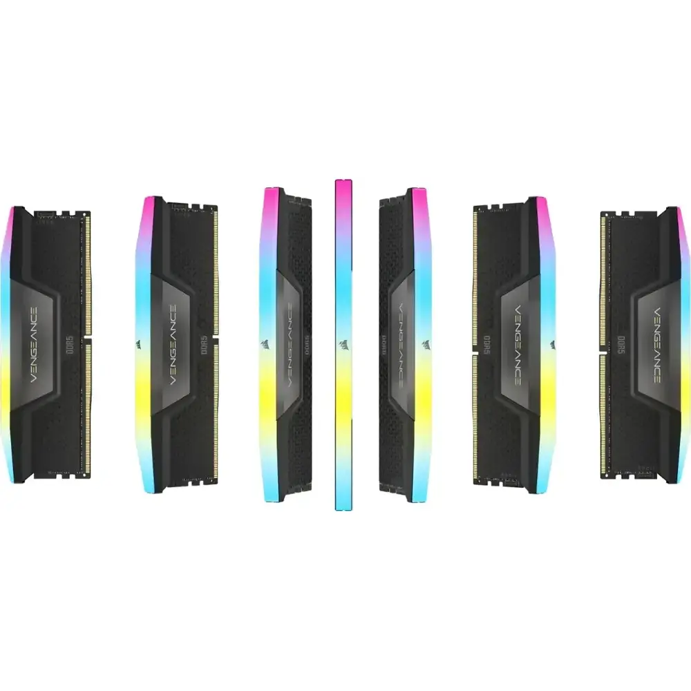 CORSAIR VENGEANCE RGB DDR5 memory offers cutting-edge DDR5 performance, higher frequencies, and larger capacities, all optimized for Intel motherboards. It also adds dynamic, individually addressable ten-zone RGB lighting to your PC. With tightly screened high-frequency memory chips, it delivers faster processing, rendering, and buffering, while onboard voltage regulation ensures easy, precise overclocking. CORSAIR iCUE software allows you to customize RGB lighting, monitor real-time frequencies, manage onboard voltage, and personalize Intel XMP 3.0 profiles. The custom PCB ensures excellent signal quality, providing exceptional performance and stability on the latest Intel DDR5 motherboards. For top-tier DDR5 performance with stunning RGB lighting, VENGEANCE RGB DDR5 leads the way.