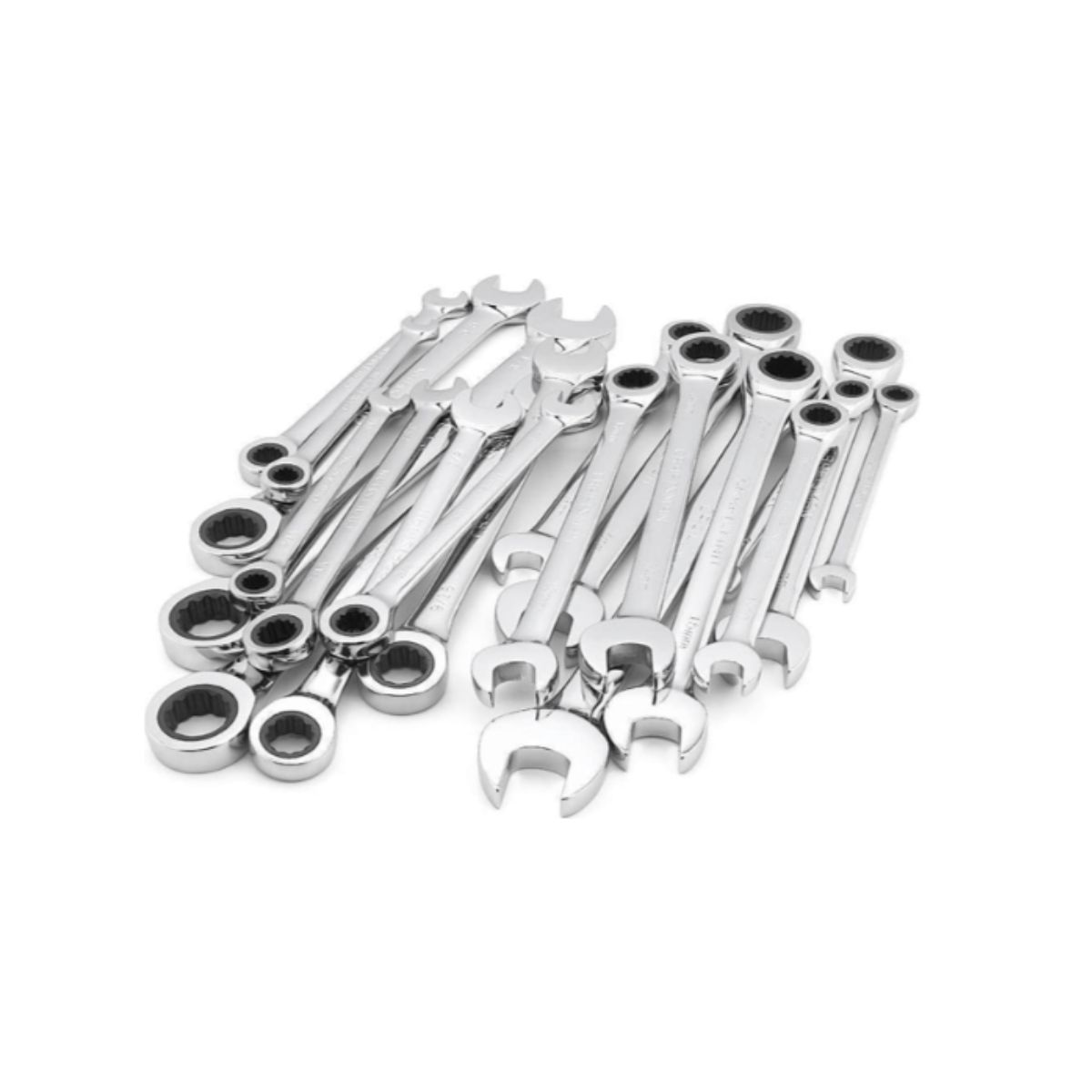 Whether you’re working under the hood or under the sink, this 20-Pc. Combo Wrench Set will give you all the torque you need. Having to lift the wrench to reset and make a new turn isn’t always an option in tight quarters. The ratcheting end gives powerful turns with minimal adjustments. The open ends are reinforced to give you the strength needed to bust loose stuck bolts. No matter if you’re working on a project with SAE or metric fasteners, this set can handle either to give you total coverage. The alloy steel construction ensures that these tools are tough enough for any job on your to-do list. Get the job done right with this durable ratcheting 20-pc. wrench set.