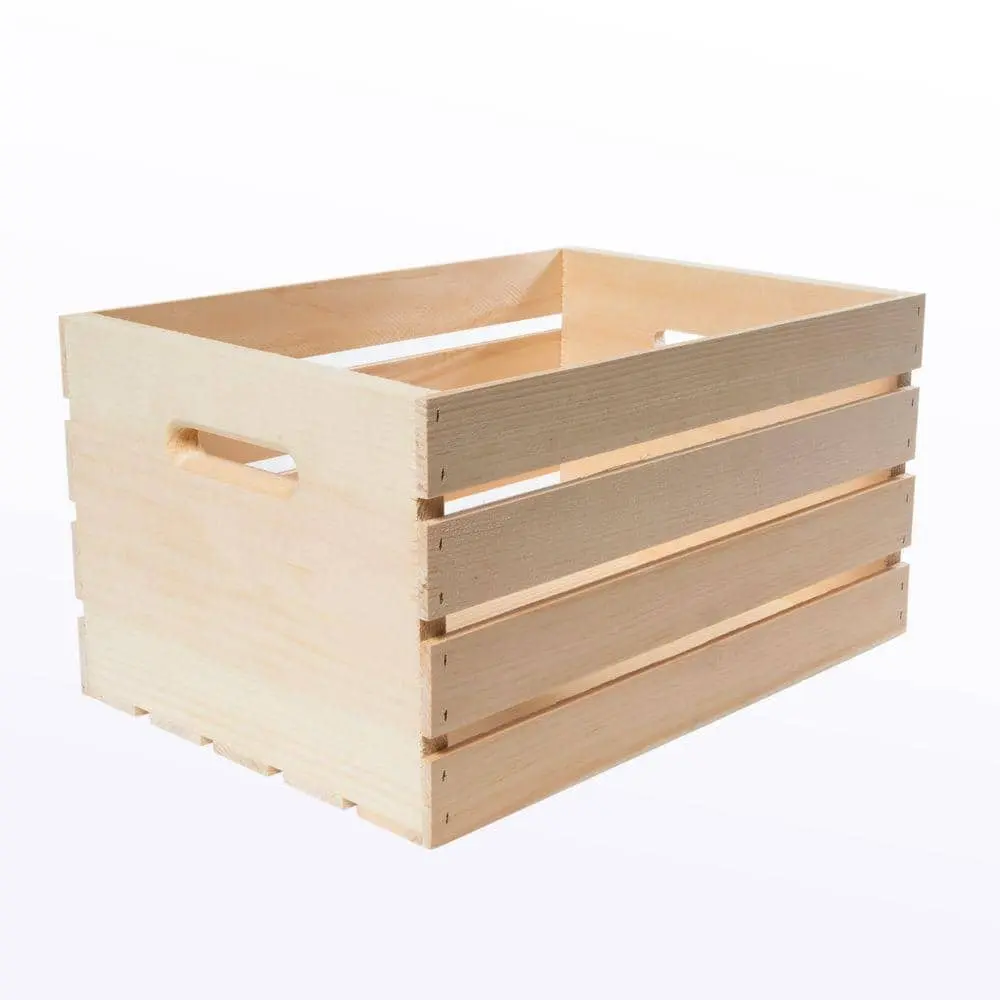 The Crates & Pallet 18 in. x 12.5 in. x 9.63 in. Large Wood Crate is a versatile and practical storage solution. With dimensions of 18 in. L x 12.5 in. W x 9.63 in. H, it offers ample space for organizing and displaying items. The crate is made from durable, high-quality wood, ensuring strength and longevity. Its rustic aesthetic and natural wood finish make it a stylish addition to any room, while the lightweight design makes it easy to handle and transport. Perfect for those seeking an eco-friendly storage option, this crate is crafted from sustainable materials, making it a great choice for environmentally conscious consumers