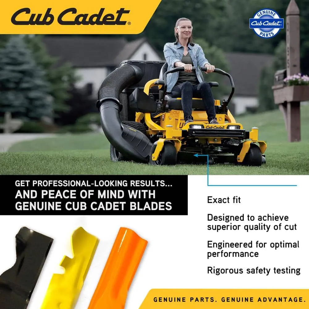 Cub Cadet Genuine Parts blades are precisely engineered to meet the exact specifications of Cub Cadet original equipment. Each blade undergoes a thorough multi-step testing process to ensure top-notch safety and performance. For a healthier, cleaner lawn, it's recommended to replace your blades each season. Only use Cub Cadet Genuine Parts blades for an exact fit, optimal performance, and maximum safety.