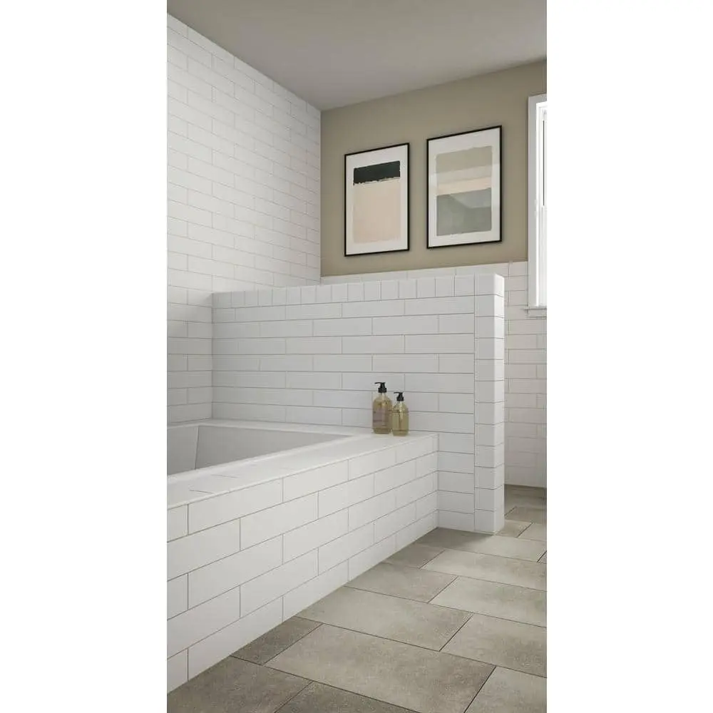 The Daltile Restore Bright White Ceramic Bullnose Corner Wall Trim Tile features a glossy, bright white finish, providing a clean and fresh look for any space. Designed with a bullnose edge, it offers rounded corners for a smooth, finished appearance. Made from durable ceramic, this trim tile ensures long-lasting use and is perfect for corner wall installations in kitchens, bathrooms, and more. Each tile measures 2 in. x 2 in., covering 0.02 sq. ft. per piece, making it an ideal choice for finishing touches on your wall design.