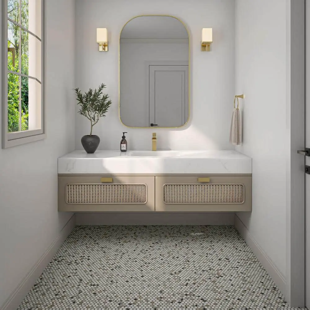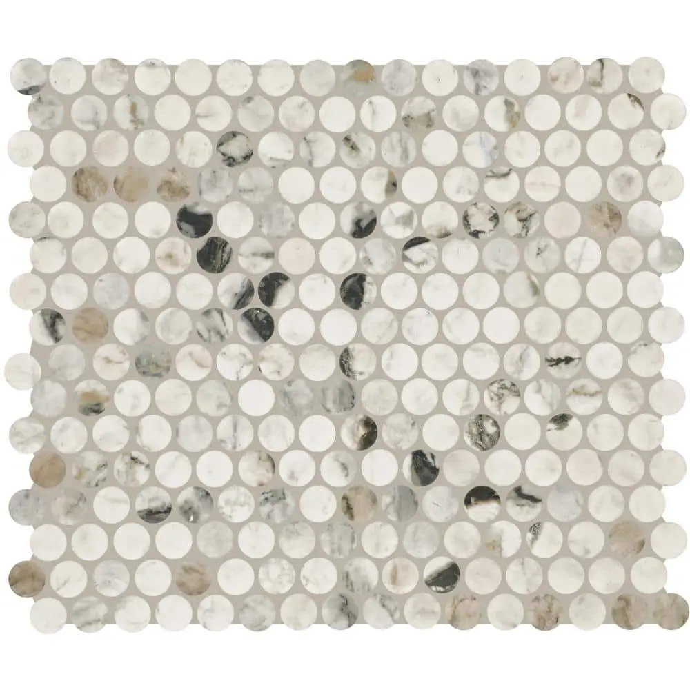The Daltile Stone Decor Accents River Rock 11 in. x 13 in. Matte Ceramic Penny Round Mosaic Tile offers a sleek, matte ceramic finish that provides a subtle yet sophisticated look. Each tile measures 11 in. x 13 in., covering 1.06 sq. ft. per tile, making it perfect for various applications. The tile features a unique penny round mosaic design, which creates a textured, visually striking surface. Inspired by natural elements, the river rock-inspired pattern adds a touch of organic beauty to your space. Made from durable ceramic, it is designed to offer long-lasting performance, while the matte finish makes it easy to clean and maintain. Ideal for use on both walls and floors, this tile is perfect for bathrooms, kitchens, and backsplashes.