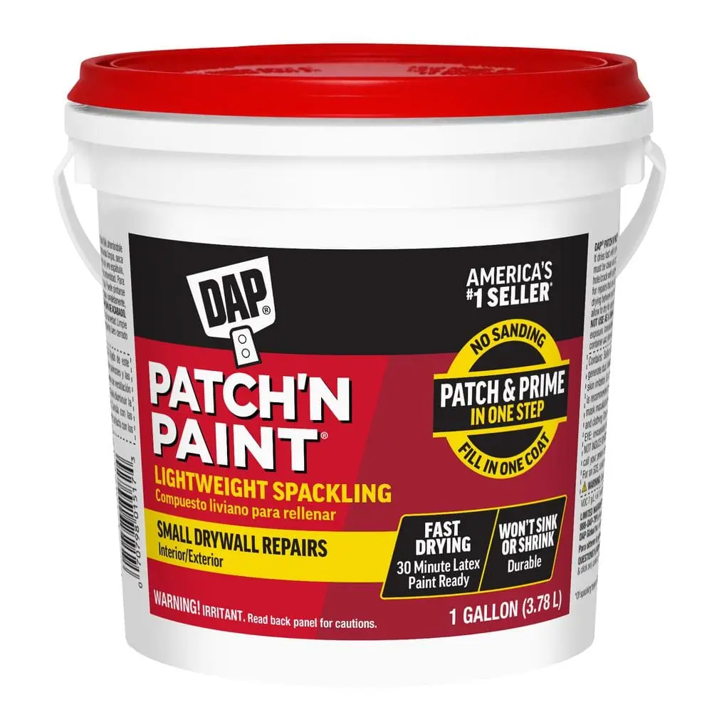 DAP Patch-N-Paint 128 oz. Premium-Grade Lightweight Spackling Paste offers a premium-grade formula that delivers professional-quality results for your repair projects. Its lightweight composition makes it easy to spread and sand, ensuring a smooth, flawless finish. Known for its durability, it provides long-lasting repairs that resist cracking and shrinking over time. The fast-drying formula helps you complete projects efficiently. This versatile spackling paste is ideal for use on drywall, plaster, wood, and more, and it is easy to paint, allowing it to seamlessly blend with surrounding surfaces.