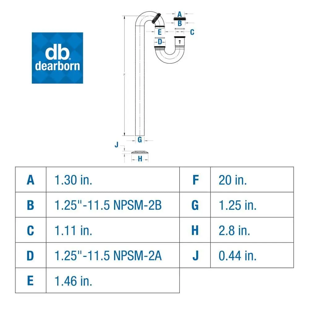 The 1-1/4 in. Brass S-Trap is designed to allow drainage through the floor rather than the wall. Made from durable brass with a chrome-plated finish, it features slip connections and a maximum working pressure of 15 psi. Dearborn is renowned for offering high-quality plumbing products that cater to the needs of professional plumbers.