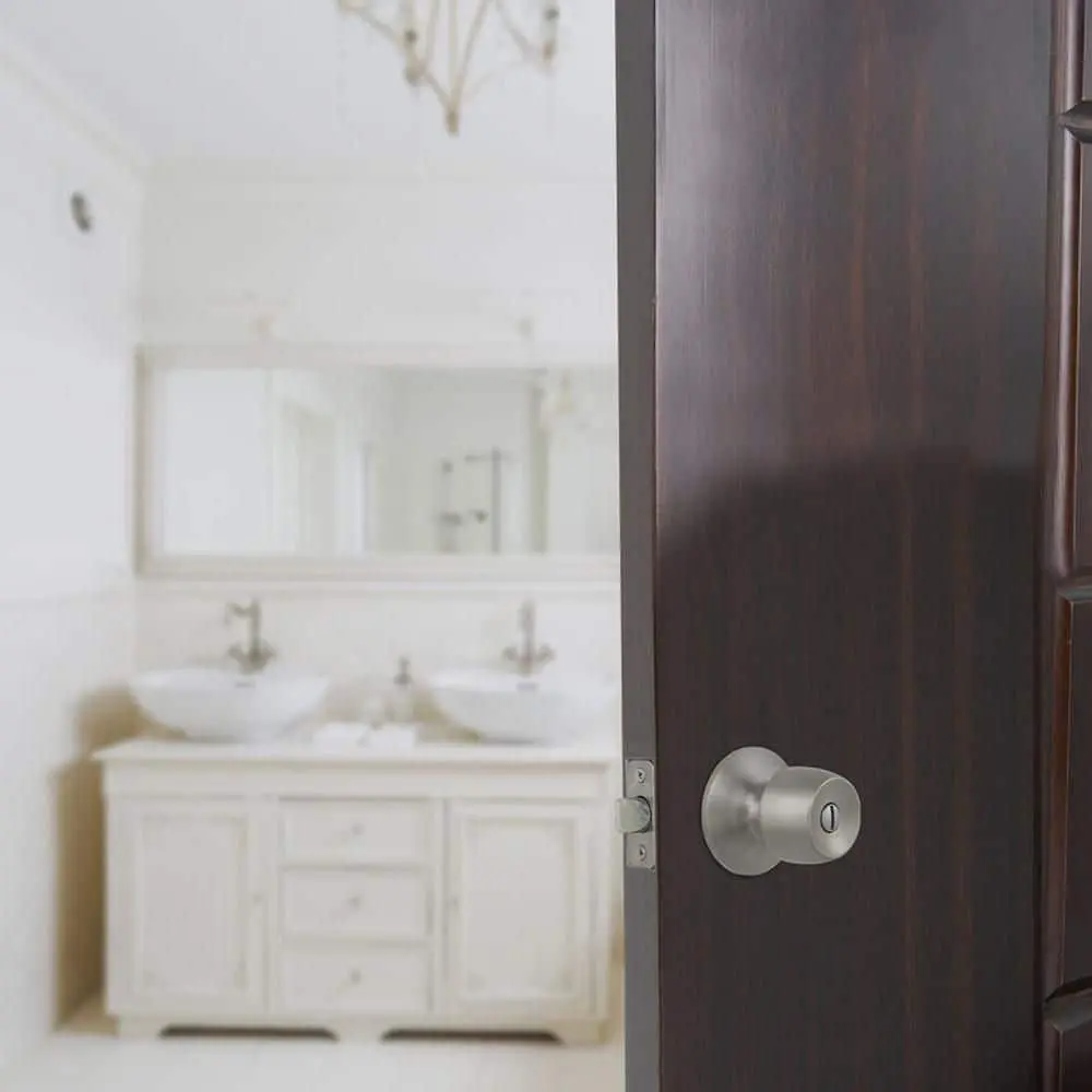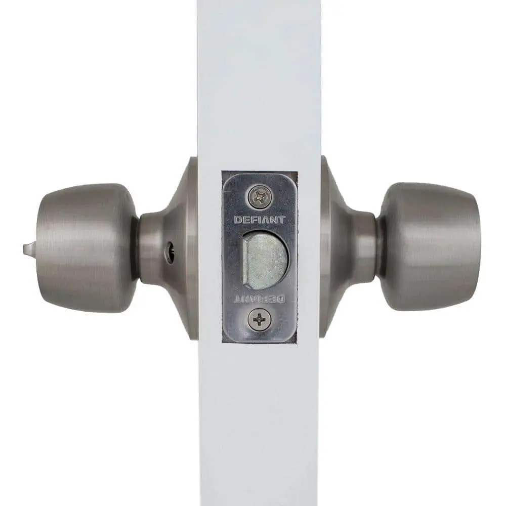 Outfit your interior doors affordably with this lockable knob set from Defiant. The Brandywine Privacy Knob installs easily on doors ranging from 1-3/8 in. to 1-3/4 in. thick with the included hardware. The new 70 mm rose plate design helps cover any paint rings left from previous door hardware installations. Ideal for bedroom and bathroom doors where privacy is needed, this set includes a dual backset latch and interchangeable faceplates for both drive-in and traditional installations. The sturdy knob complements other fixtures in your home for a coordinated look.