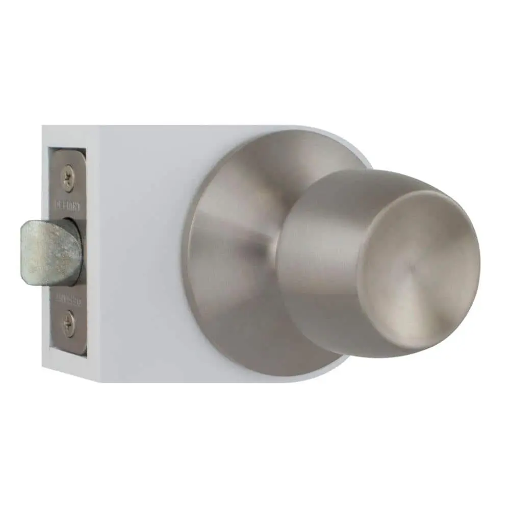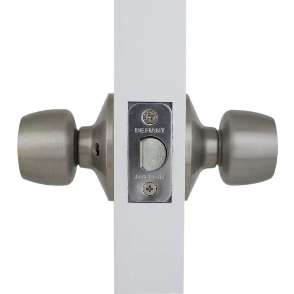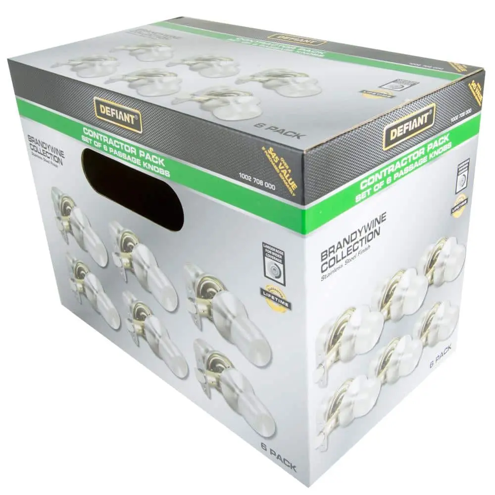 The Defiant Brandywine Stainless Steel Passage knob set offers exceptional durability and security, backed by a lifetime guarantee. Its design ensures easy installation using only a Phillips screwdriver, making it ideal for residential use.
