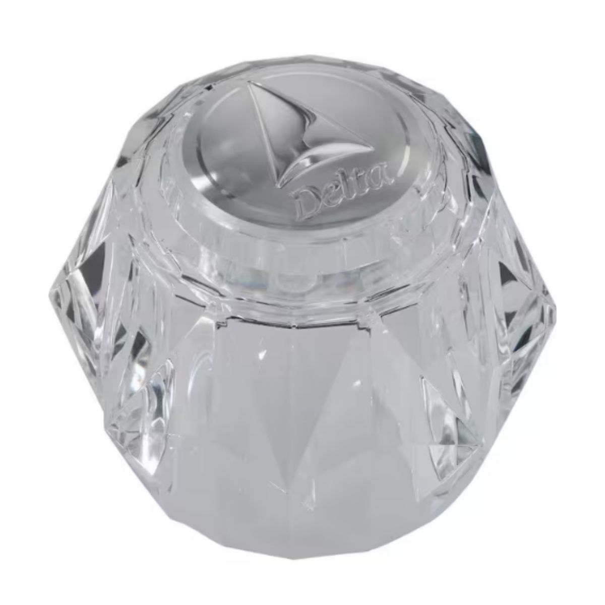 The Delta Single Clear Knob Handle Kit is made of sturdy plastic and includes a button. Its knob-shaped handle has a clear finish. With Delta's Less Handle program, you can select your trim and handles to personalize the appearance of your faucet throughout your home. Choose from our wide range of handles to match various décor styles and create your desired look.