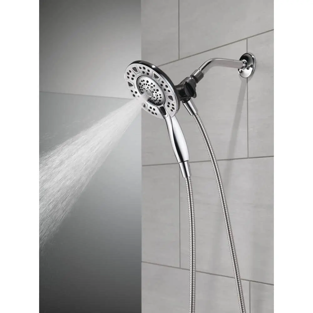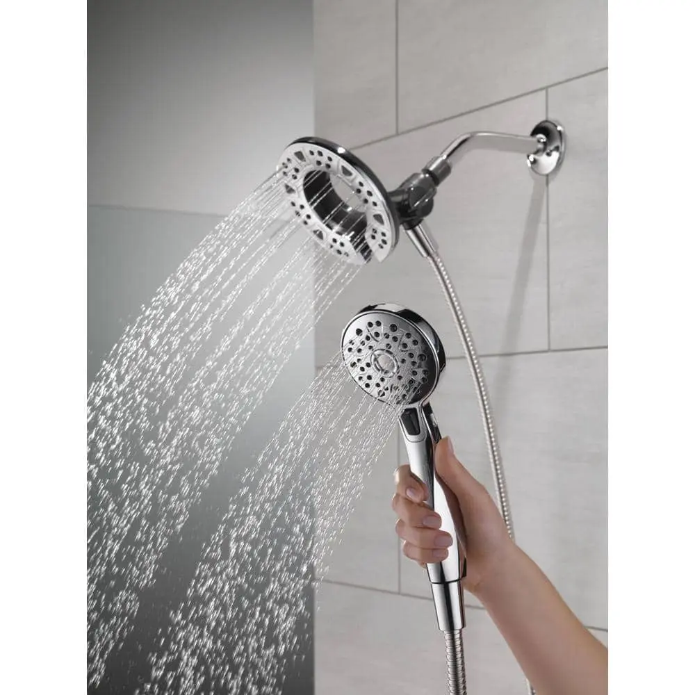 The Delta In2ition Two-in-One Shower offers exceptional versatility with its detachable hand shower, allowing you to use it separately or simultaneously with the main shower head. This integrated dual functionality maximizes flexibility while maintaining warmth, letting you choose between water streaming from the shower head, the hand shower, or both at once. Includes full body, shampoo rinsing, soft rain, and pause settings. Additionally, the efficient spray setting helps conserve water, alleviating concerns about hot water depletion and benefiting the environment. With Deltas WaterSense labeling, this shower uses at least 20% less water than the industry standard, saving you money without compromising performance.
