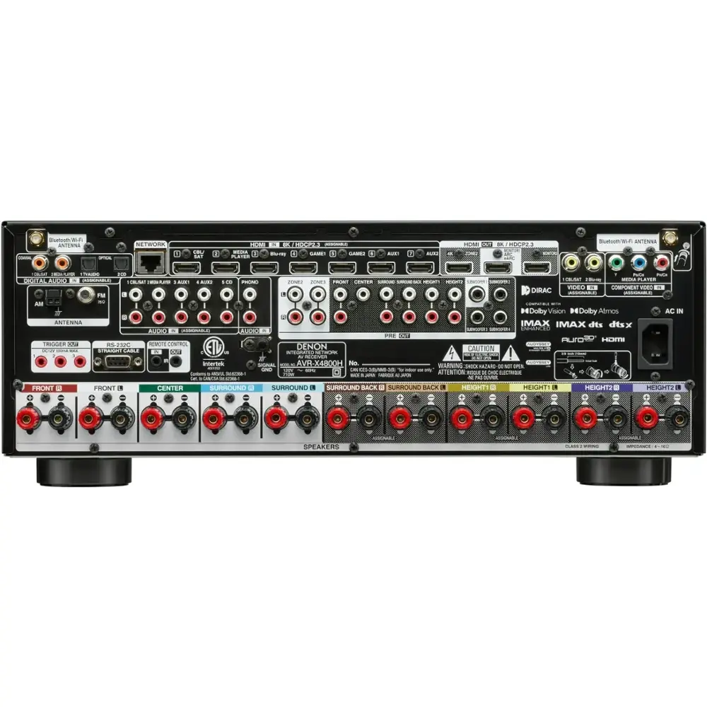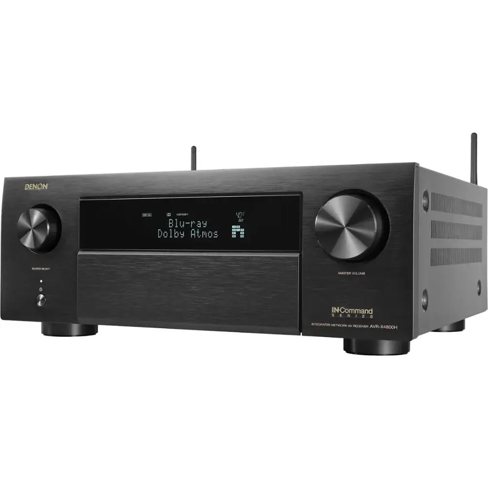 The Denon AVR-X4800H 9.4-Ch. AV Home Theater Receiver delivers exceptional audio performance with 125W x 9 channels, providing powerful and immersive sound. Its 9.4-channel processing supports cutting-edge surround formats like Dolby Atmos and DTS:X for a truly cinematic experience. Designed for the future, it offers 8K Ultra HD compatibility with HDR support, ensuring high-resolution content looks stunning. Featuring HEOS built-in, it enables seamless wireless streaming and multi-room audio capabilities. Enjoy hands-free control with Alexa voice compatibility, and easily integrate it into your setup with versatile connectivity options including HDMI, WiFi, Bluetooth, and Ethernet. Enhanced by advanced Audyssey calibration, this receiver optimizes sound performance for your specific room configuration