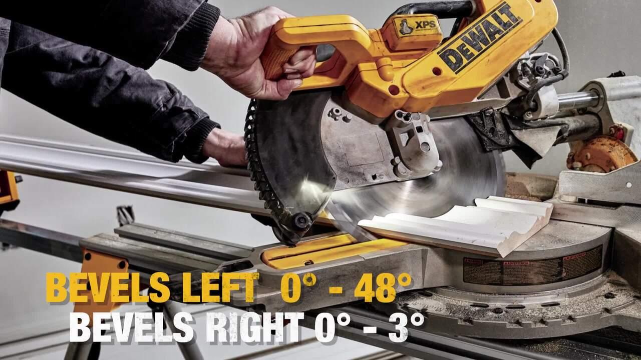 The DEWALT 12 in. Double Bevel Sliding Compound Miter Saw offers outstanding performance with a powerful 15 Amp, 3,800 rpm motor and an integrated XPS crosscut positioning system for precise, adjustment-free visibility. It features tall sliding fences for handling up to 7-1/2 in. crown molding and 6-3/4 in. base molding, and the Exclusive Back Fence Design cuts up to 2 x 14 lumber at 90. With a wide miter range (60 right and 50 left), an adjustable miter detent plate, and an oversized bevel scale, this saw ensures accurate and easy adjustments. Its compact, lightweight design (58 lbs.) and efficient dust collection enhance usability, while dual horizontal steel rails and an innovative gearbox provide durability and precision.