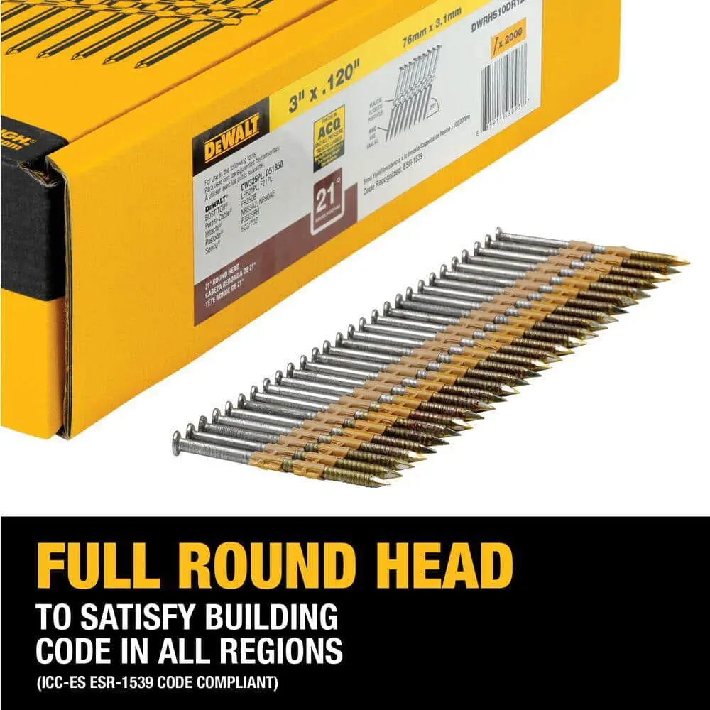 The DWRHS10DR120G 3 in. x 0.120 in. Ring Shank Galvanized Framing Nails are part of the trusted DEWALT lineup, known for producing high-performance and durable tools. DEWALT's commitment to creating reliable, heavy-duty products ensures these nails can endure tough jobsite conditions and meet the rigorous demands of professional contractors.