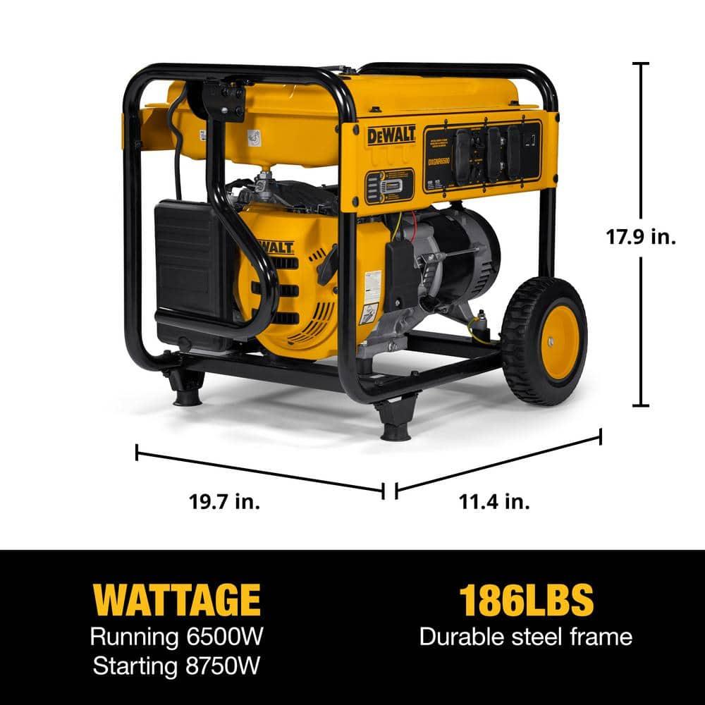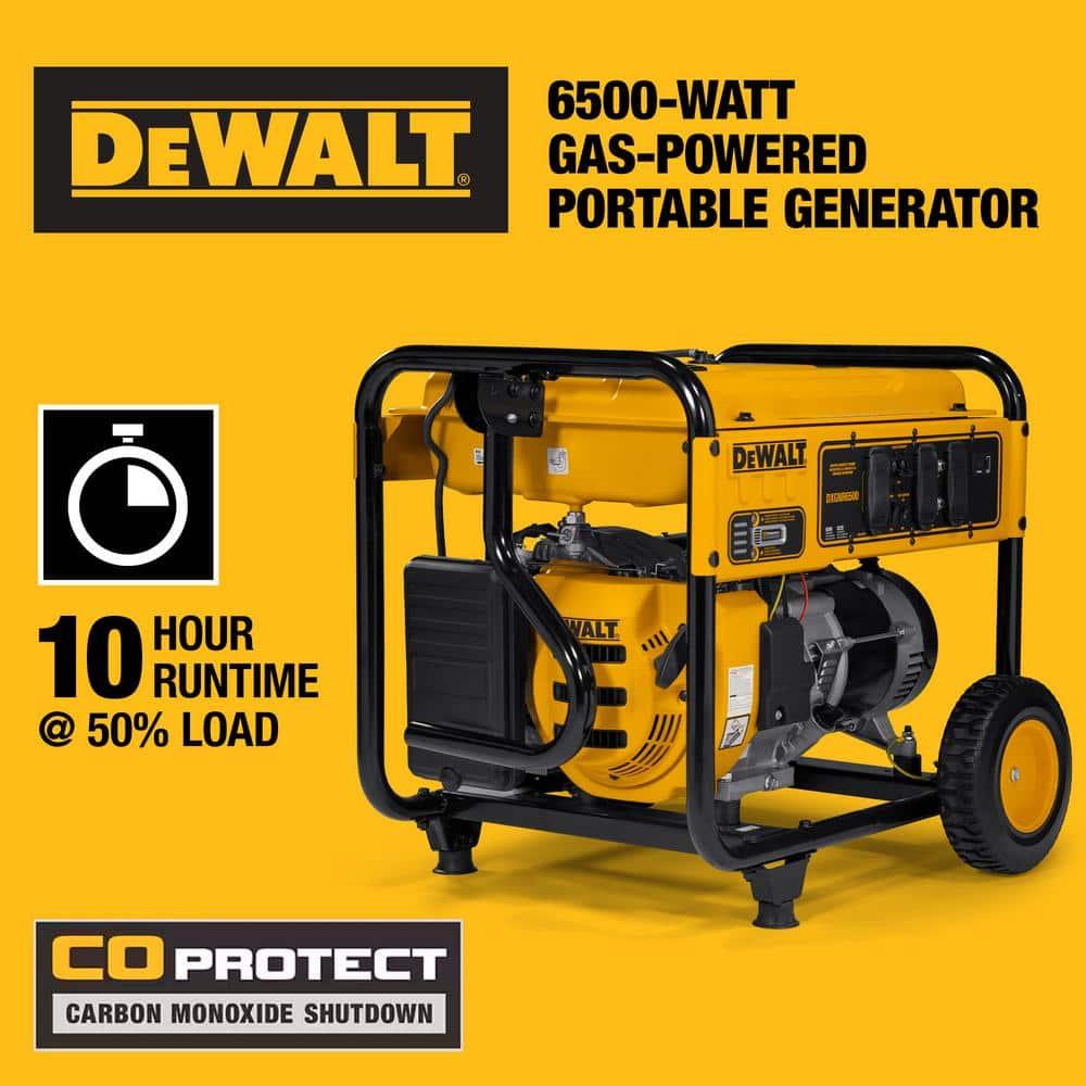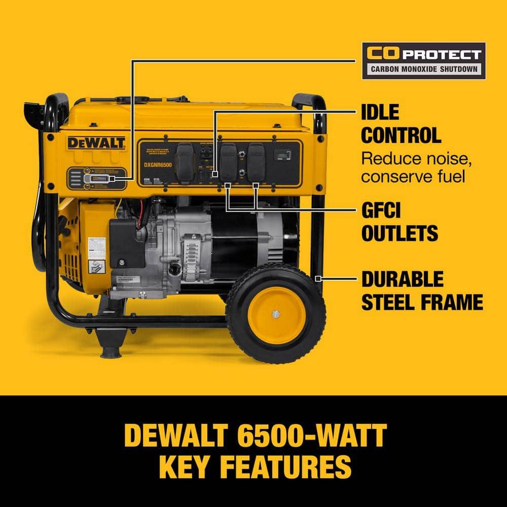 DEWALT 6500 Watt Manual Start Gas Powered Portable Generator with Idle Control, Covered Outlets and CO Protect (DXGNR6500)