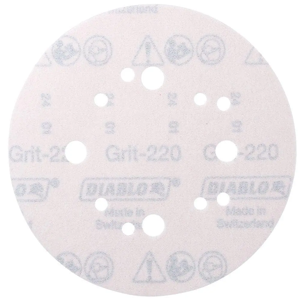 The DIABLO 5 in. 220-Grit Hook and Lock ROS Sanding Discs are perfect for fine sanding and surface smoothing, ideal for achieving a smooth finish on wood and metal. Featuring the Hook and Lock system, they provide a secure attachment to your sanding tools, ensuring ease of use during your projects. Built with durable construction, these discs are designed to withstand heavy-duty sanding tasks. The set includes a 5-pack, giving you multiple discs for extended use and continued performance.