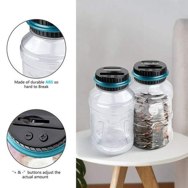 Looking for a fun and practical way to manage spare change? This Digital Counting Coin Bank is a smart money-saving solution for both kids and adults. Designed with a clear LCD display, it automatically counts and displays the total amount as you insert coins. Whether you're teaching children about the value of money or simply organizing loose change at home, this coin jar offers an easy and interactive experience. Made from durable ABS plastic and featuring a generous 1.8-liter capacity, it holds up to 1000 U.S. coins. Plus, with the convenient +/- buttons, you can adjust the total when adding or removing coins or even inserting bills.