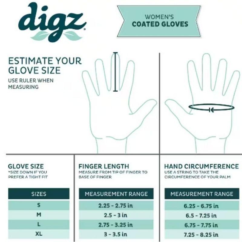 The Digz Women's Medium Nitrile Coated Garden Gloves are designed to provide comfort, protection, and dexterity for a range of gardening and outdoor tasks. Here’s a detailed description of these gloves: Features Nitrile Coating: Material: The gloves feature a nitrile coating on the palm and fingers. This coating offers excellent resistance to punctures, abrasions, and various chemicals, making them durable and suitable for handling rough or sharp materials. Grip: The nitrile coating provides a textured surface that enhances grip, allowing for secure handling of gardening tools, plants, and other objects. Breathable Fabric: Material: The back of the gloves is typically made from a breathable, stretchy knit fabric, such as nylon or spandex. This material allows for good air circulation, helping to keep your hands cool and comfortable during extended use. Comfort and Fit: Details ANSI/ISEA Cut Rating:Not Rated Clothing Product Type:Gloves Color:Multi-Colored Gender:Women's Glove Features:Latex-Free, Nonslip Grip Glove Material:Other Glove Size:Medium Glove Type:Outdoor Gloves & Mittens Product Type:Outdoor & Work Hardware Color Family:Multi Pack Size:1 Use: Ideal for various gardening tasks such as planting, weeding, and general outdoor work. They are also suitable for handling tools, soil, and plants.