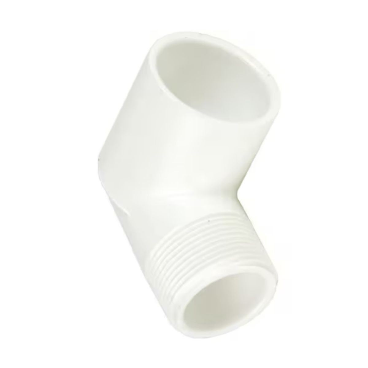 The DURA Plastic Products 1/2 in. PVC Sch. 40 Pressure 90° MIPT x Slip Street Elbow is suitable for cold-water pressure systems and finds applications in irrigation, swimming pools, spas, and gardens. Crafted from type 1-grade 1 PVC, it ensures optimum performance and durability.