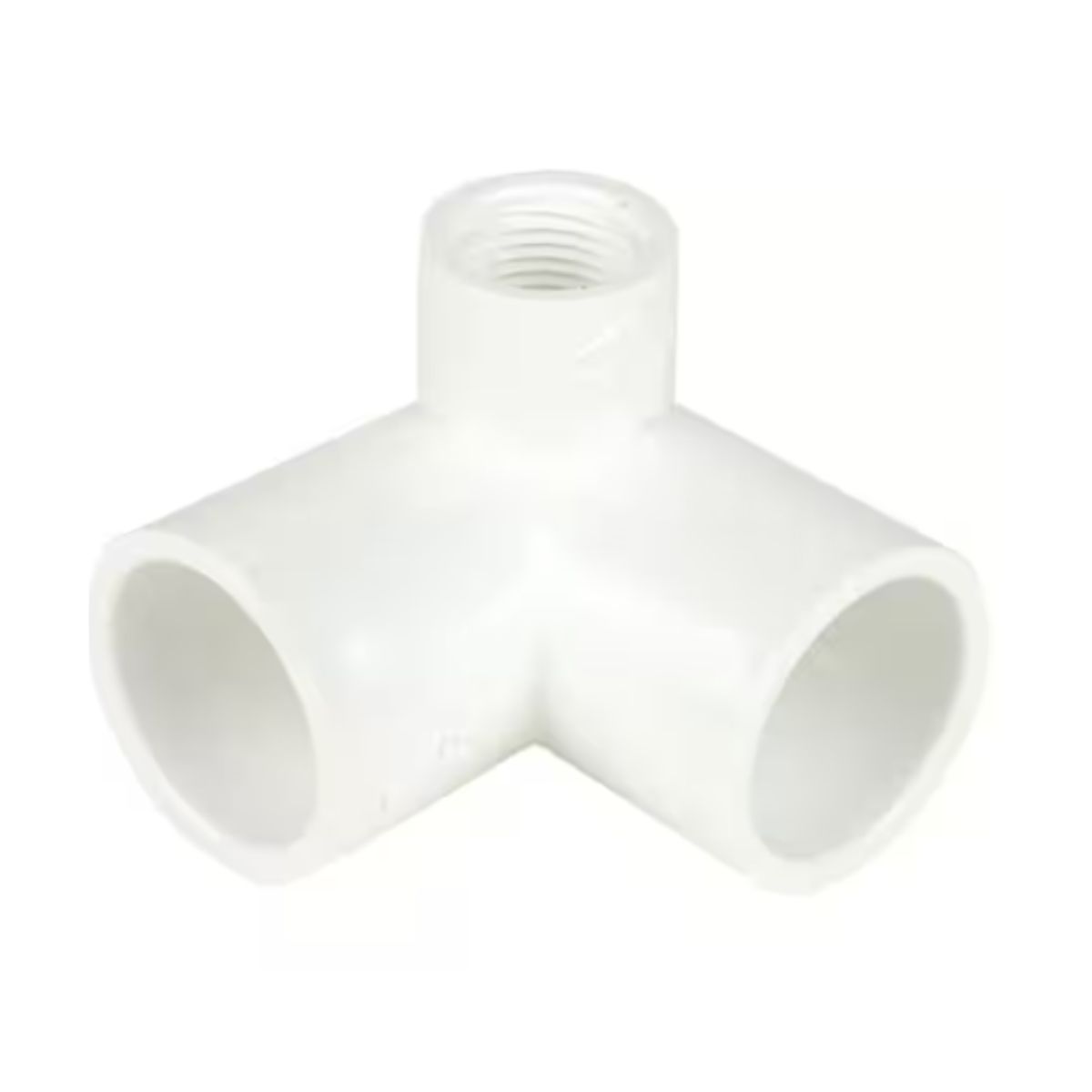 Use this DURA Plastic Products 3/4 in. x 3/4 in. x 1/2 in. Reducer Side Outlet 90° Elbow to connect the branch line to a corner in the main water line. It's ideal for typical irrigation setups and made from Type 1 Grade 1 PVC for top-notch performance.