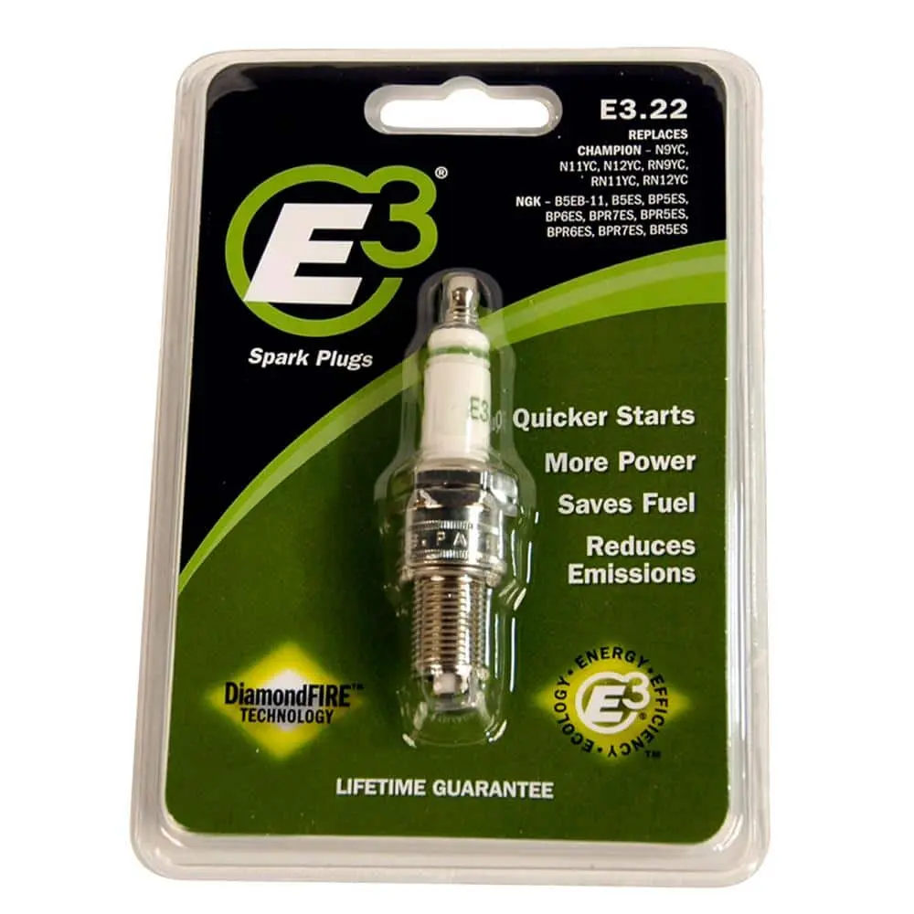 E3 Lawn & Garden Spark Plugs feature a patented Edge-to-Edge DiamondFire ground electrode that enhances fuel efficiency by promoting a more complete burn. This results in improved power, reduced fuel consumption, and fewer emissions. The advanced design extends the lifespan of the spark plug, making it ideal for small engines, and helps achieve cleaner combustion, all while increasing engine performance.