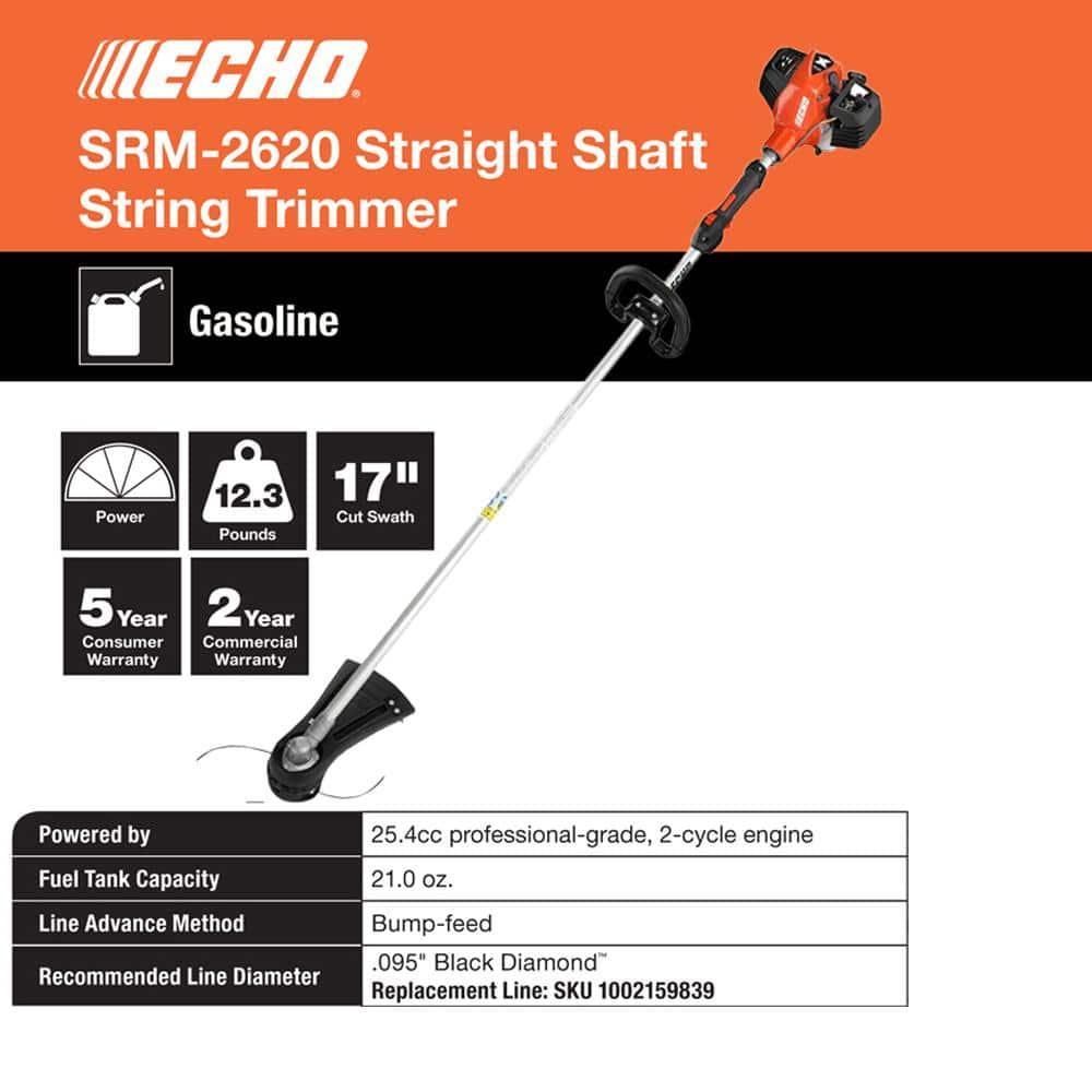 The X Series ECHO SRM-2620 Weed Trimmer sets a new standard for professional landscaping equipment. Combining low weight with high horsepower, this trimmer delivers exceptional performance. Its features include the revolutionary Speed-Feed 400 trimmer head for fast line reloading, class-leading air filtration for reliable operation, and an easy starting system to ensure you're ready to work quickly. With its powerful engine and high EPA durability rating, the SRM-2620 is built to handle demanding tasks and deliver lasting reliability.