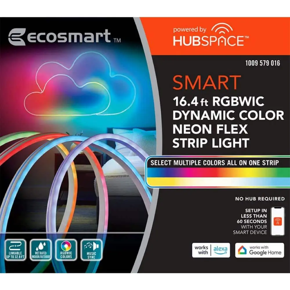 The Outdoor/Indoor 16FT Plug-In RGBWIC Tunable White LED Neon Flex Light with Hubspace is the ultimate solution for your accent, decorative, and seasonal lighting needs. With built-in Hubspace Smart App support, you can control the light with presets, holiday modes, music sync settings, and full color/white control. Perfect for both indoor and outdoor settings, this flexible light is ideal for home theater rooms, gaming areas, patios, decks, pergolas, balconies, gazebos, restaurants, food trucks, or any DIY lighting project.