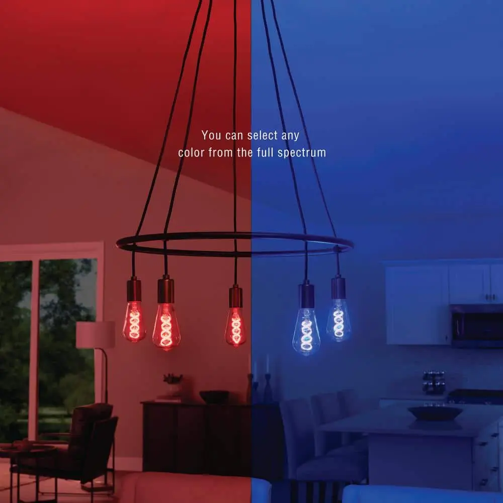 EcoSmart's 60-Watt Equivalent ST19 Clear Smart LED bulbs offer customizable lighting with convenient wireless control through your existing Wi-Fi or Bluetooth network. No hub is needed to operate these Hubspace smart bulbs, and setup takes just a few minutes. Even when Wi-Fi is offline, you can still control the bulbs via Bluetooth. Simply download the Hubspace app on your Android or iOS device to get started. You can also control the bulbs using your voice assistant, like Alexa or Google Home. These energy-efficient bulbs use only 8.5 watts of power to produce up to 800 lumens, equivalent to a 60-watt incandescent ST19 bulb. Featuring tunable white technology, the bulbs allow you to adjust the color temperature between 2200K (Warm White) and 6500K (Daylight Deluxe). Additionally, they offer a full spectrum of colors, so you can create the perfect ambiance for any occasion.