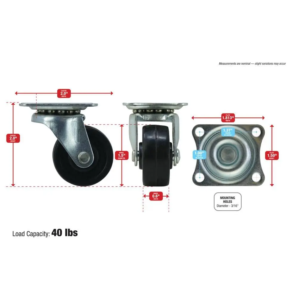 Experience effortless maneuverability and mobility with the durable Everbilt Rubber Wheel Swivel Plate Caster. With a 40 lb. load capacity and 360-degree swivel, it ensures smooth transport of light furniture and items without damaging floors. Ideal for situations where quiet movement and floor protection are top priorities.