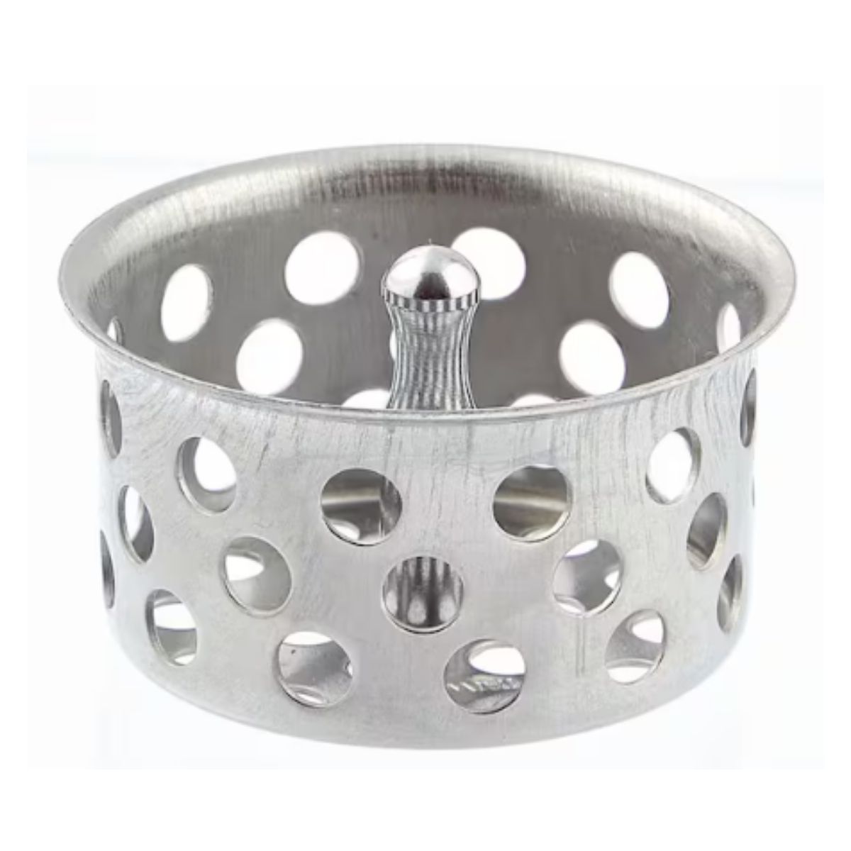 Prevent drain clogs with this stainless steel strainer, designed to catch larger debris. It's durable for everyday use and easily removable with a center post for cleaning, ensuring free-flowing drains. Fits standard laundry sink drains.