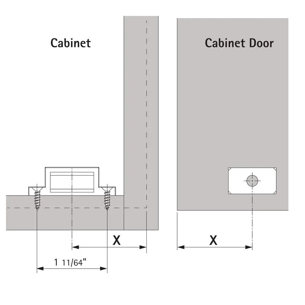 Ideal for playrooms, garages, kitchens, bathrooms, and more! This magnetic catch keeps doors securely closed with a holding capacity of up to 11 lbs. Its white finish blends seamlessly into white interior cabinets, bookshelves, vanities, or any other furniture that needs to stay shut. Both parts of the catch are easy to install: the magnet screws into the cabinet, while the counter plate attaches to the inside of the furniture door.