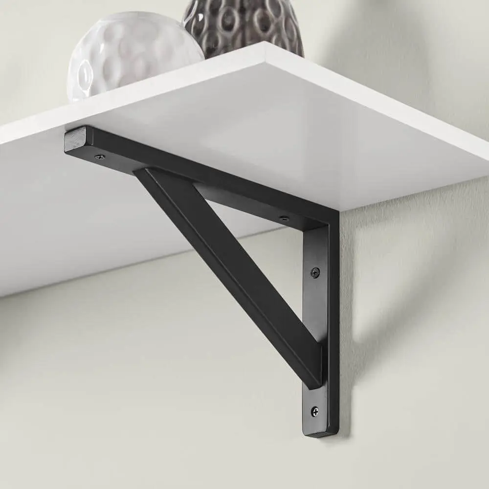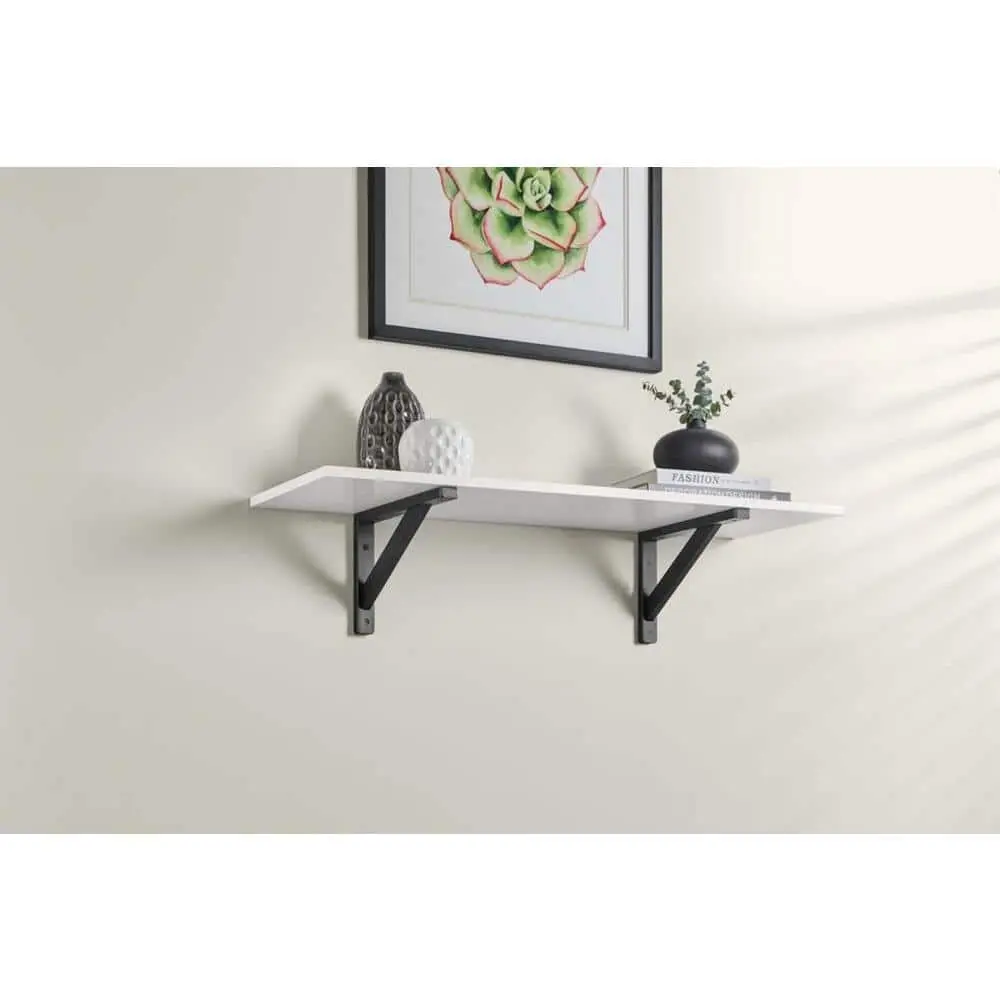 The Everbilt 11.5 in. x 7.5 in. Black Wooden Bracket combines durability and style, making it a perfect choice for shelving support. Crafted from strong wood construction, it ensures reliable stability while adding a sleek black finish for a modern touch. Its compact size allows for versatile use in various spaces, including closets, kitchens, and living areas. Designed for easy installation, it features pre-drilled holes for quick and secure mounting. With a strong load capacity, this bracket provides the perfect balance of functionality and aesthetics for your shelving needs.