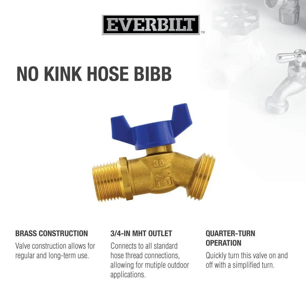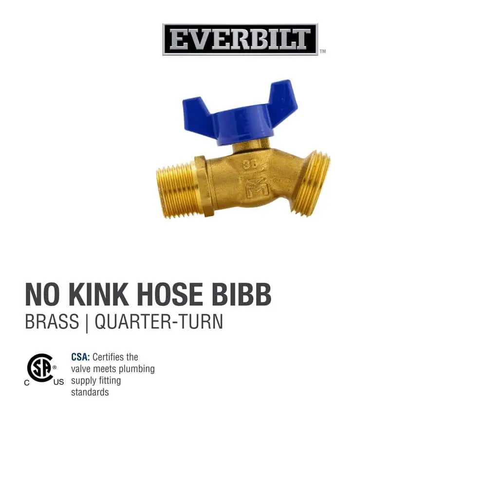 The Everbilt 1/2 in. Quarter-Turn Brass MIP Hose Bibb allows for easy water flow regulation. Perfect for general-purpose hose connections in external water services, it is compatible with standard 3/4 in. garden or washing machine hoses.