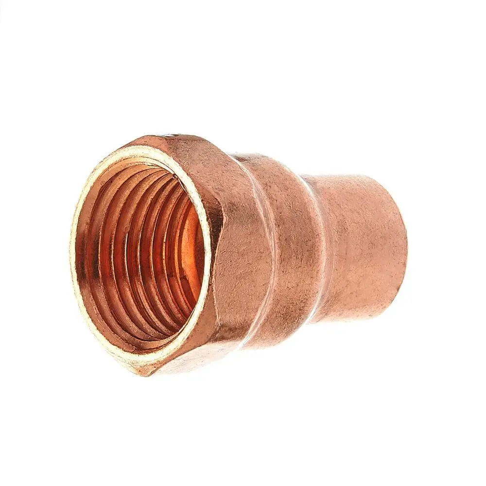 This 1/2 in. copper C x FPT adapter is designed to convert solder connections to threaded connections in both residential and commercial applications. Ideal for potable water, air conditioning, and refrigeration systems, this female-threaded adapter is intended for use with aboveground water supply piping. It operates under pressure to maintain flow, with a maximum working pressure of 722 PSI. Made from high-quality copper, this adapter is resistant to dezincification, ensuring long-lasting mechanical strength.