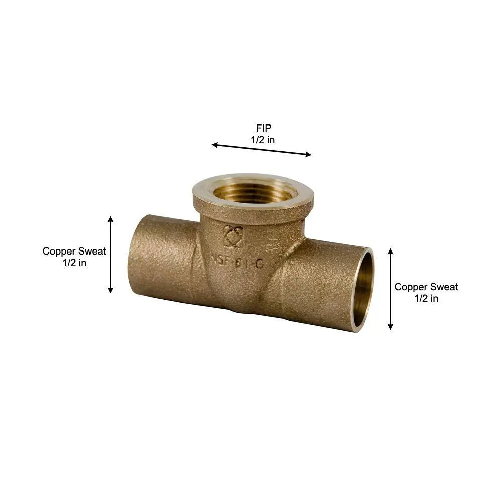 The NIBCO 1/2 in. lead-free bronze solder pressure tee is designed for both residential and commercial plumbing applications. This tee features solder cups on the run and female NPT threads on the branch, allowing for a connection that branches off in a different direction while transitioning from a solder connection to a threaded one.