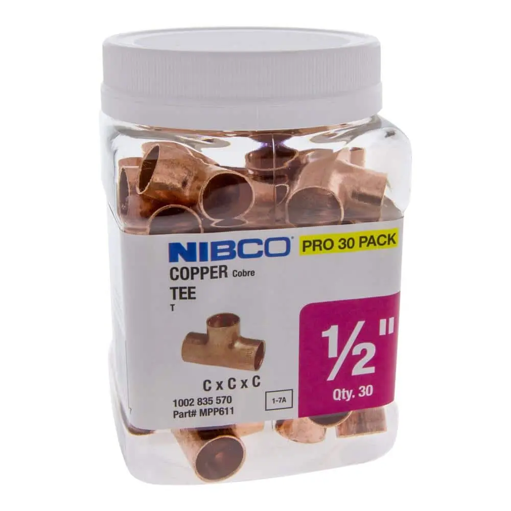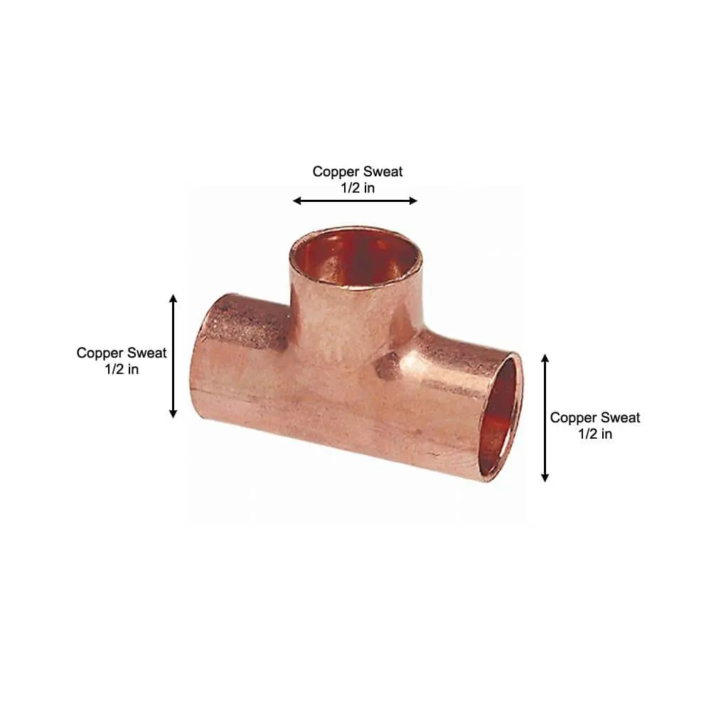 The NIBCO lead-free wrot copper solder pressure tee is designed for use in both residential and commercial systems, including potable water, air conditioning, and refrigeration applications. It is also available cleaned and bagged for oxygen service (medical gas). The tee features solder cups, enabling a secure connection in a continuous pipeline while allowing branching to a different direction. For engineering and installation details, refer to NIBCO technical data sheets and catalogs. Copper's beauty, durability, low maintenance, and reusability make it an ideal choice for sustainable projects.