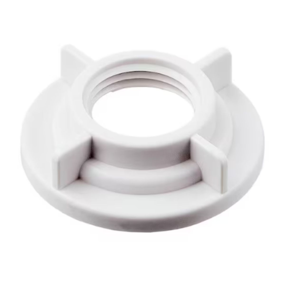 The Faucet Shank Locknut is designed to aid in faucet repair by securing the faucet in place. It attaches to the faucet shanks from underneath the counter and is compatible with all standard 1/2 inch IPS connections.