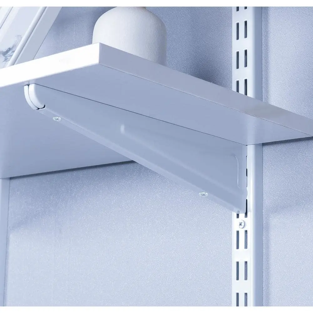 The Everbilt 18.5 in. Heavy-Duty Shelf Bracket provides strong and reliable support for larger shelves, making it perfect for heavy-duty storage needs. Crafted from durable steel construction, it ensures long-lasting strength and stability. The white powder-coated finish not only enhances its appearance but also offers rust resistance for added durability. Designed for easy installation, this bracket is a practical solution for organizing and maximizing space in any setting