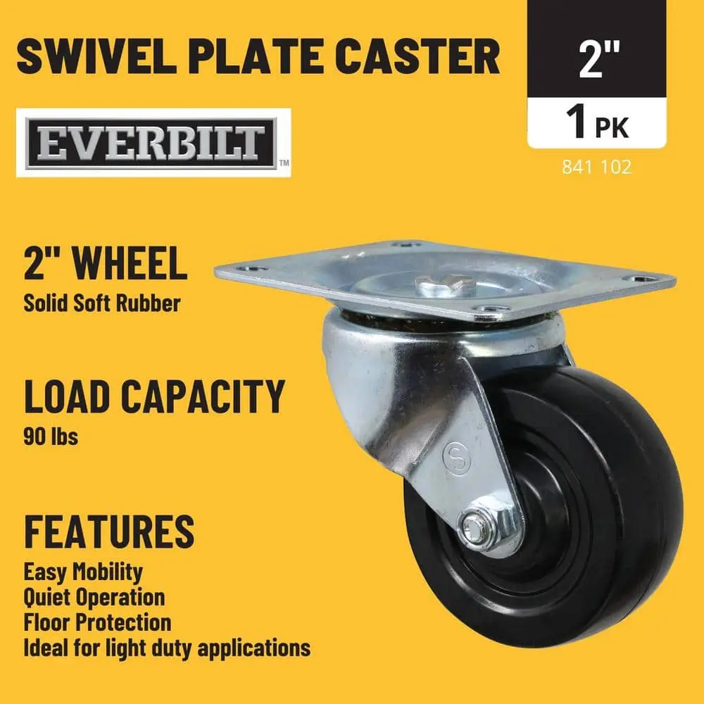 The 2-inch Swivel Plate Caster is designed to effortlessly move heavy loads across smooth, hard surfaces and finished concrete floors, where quiet operation and floor protection are essential. With a 360° swivel for easy maneuverability, it has a 90 lb. load capacity and can be securely attached using a plate and 4 screws.