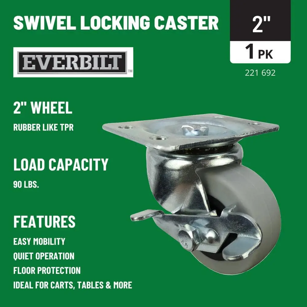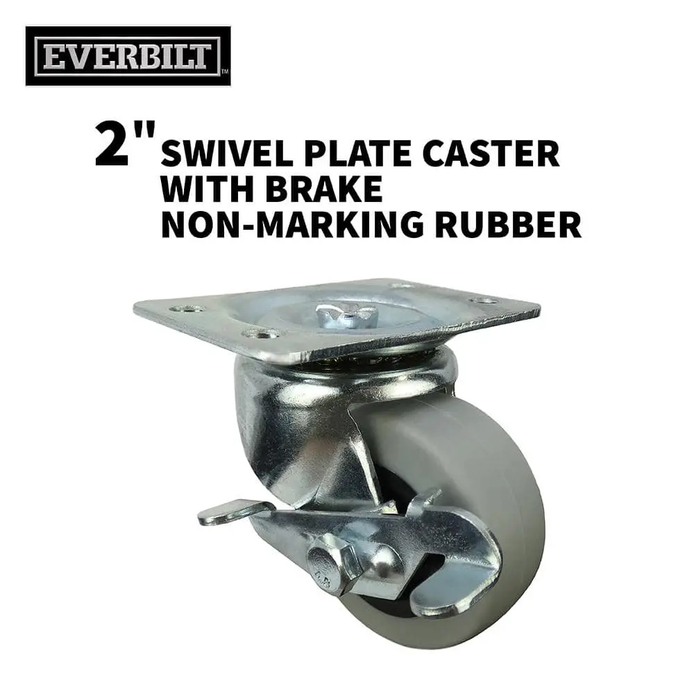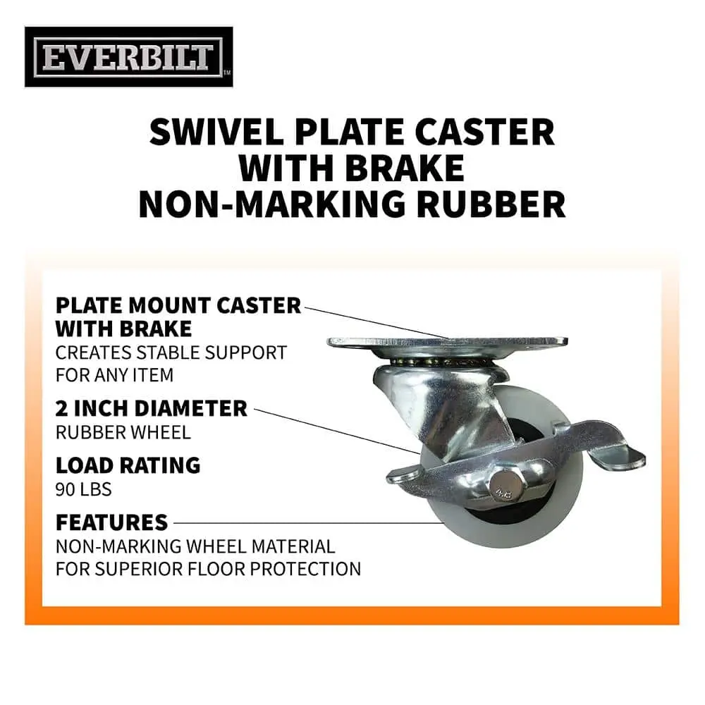 The 2-inch swivel caster with brake and non-marking rubber is ideal for everyday residential use, as well as applications in labs, hospitals, food service, and other institutional settings. Its non-marking rubber ensures a smooth, durable ride while resisting exposure to chemicals, solvents, and more. Each caster has a 90 lb. load limit.