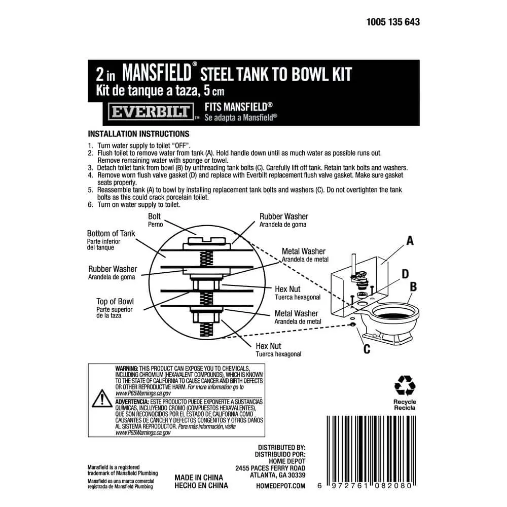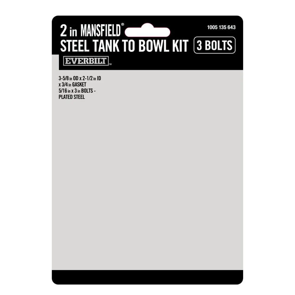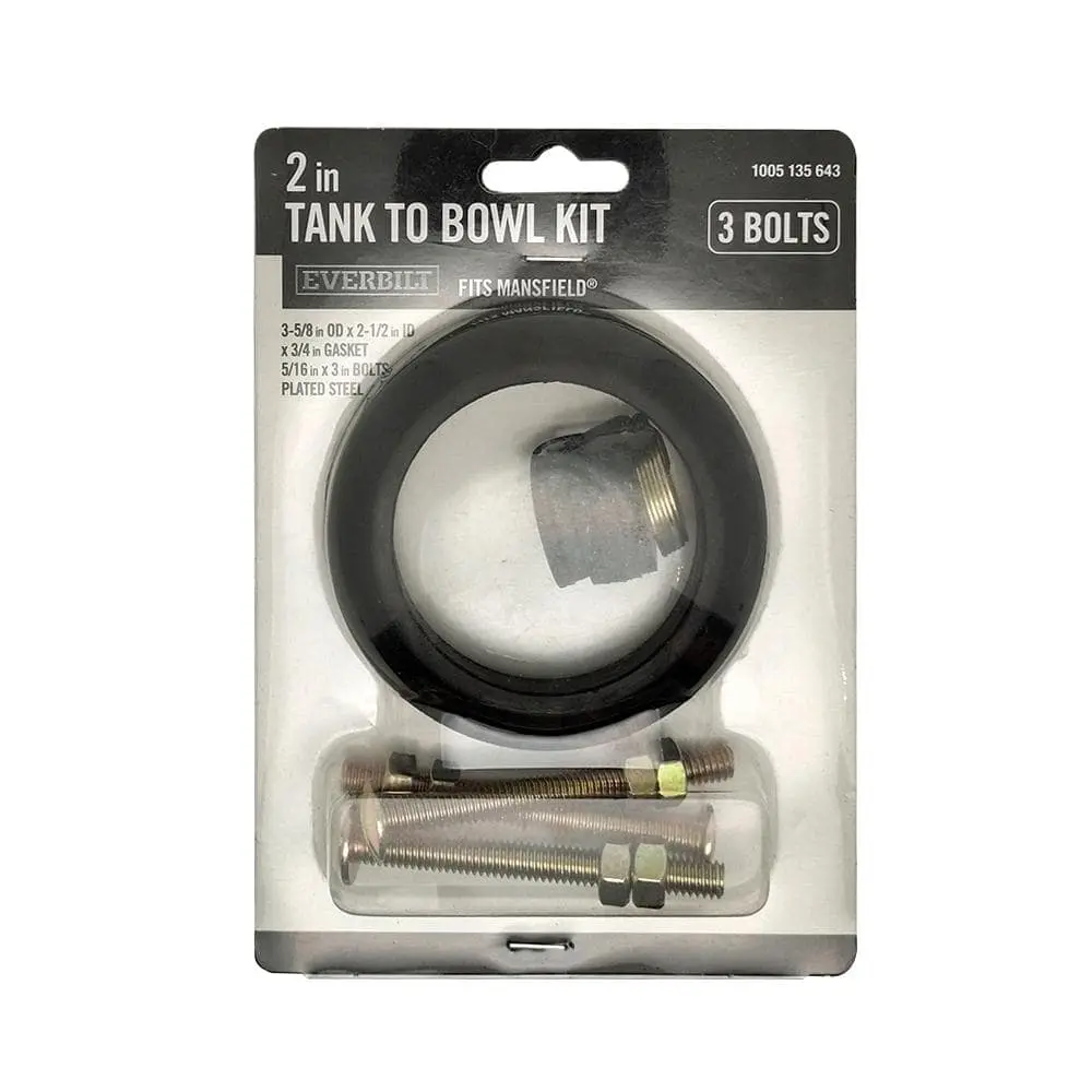 This tank-to-bowl gasket and bolt kit offers a simple solution to replacing your toilet without the need for a full replacement. The Mansfield Alto toilet kit includes a durable rubber gasket and three 3 in., 5/16 in. bolts for easy installation, designed for use with 2 in. flush valves.