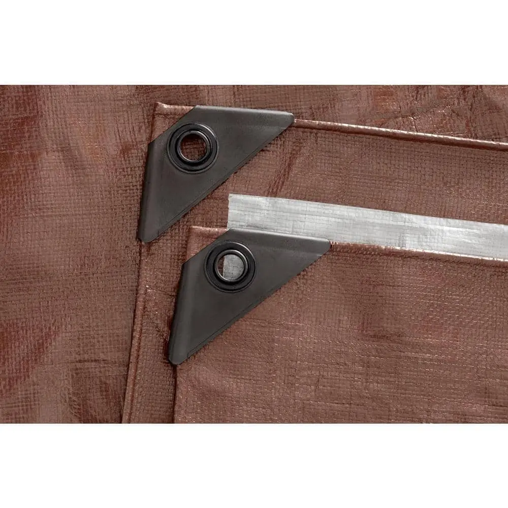 The Everbilt 20 ft. x 30 ft. Brown and Silver Heavy Duty Tarp provides maximum durability and long-lasting protection, making it ideal for demanding applications. Designed to be waterproof and UV-resistant, it effectively shields against rain, sun, and harsh weather conditions. Its dual-sided design, featuring brown on one side and silver on the other, allows for versatile use in various settings. The reinforced edges with strong grommets and rope-reinforced hems ensure a secure tie-down, preventing shifting or damage. This multipurpose tarp is perfect for covering vehicles, equipment, roofs, and large outdoor spaces, while its extra-large size of 20 ft. x 30 ft. provides extensive coverage for a wide range of needs