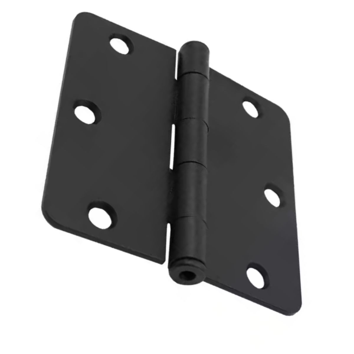 The Everbilt 3-1/2 in. x 1/4 in. Radius Smooth Action Door Hinge is easy to install, with a removable pin for easier door installation or removal. It has lubricated knuckles for quiet operation and long-life.Squeak-free door hinge for quiet operationGrease-packed door hinge pin for long-lasting smooth functionMatte black finish adds a beautiful touch to your home decor