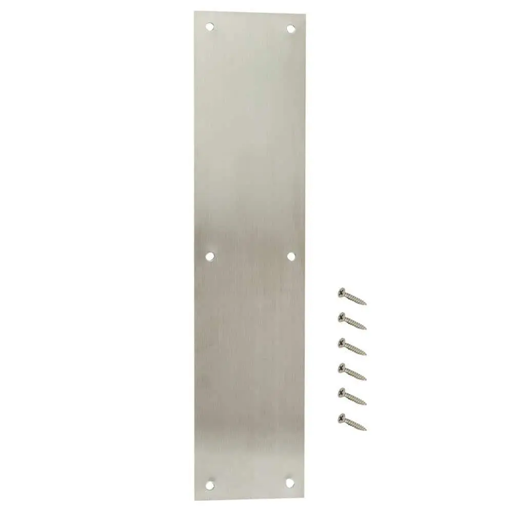 The Everbilt 3.5 in. x 15 in. Push Plate is perfect for commercial doors, offering both a decorative touch and protection for door surfaces in high-traffic areas. Crafted from durable, rust-resistant stainless steel, it’s easy to clean and maintain. For added convenience, screws are included for quick installation.