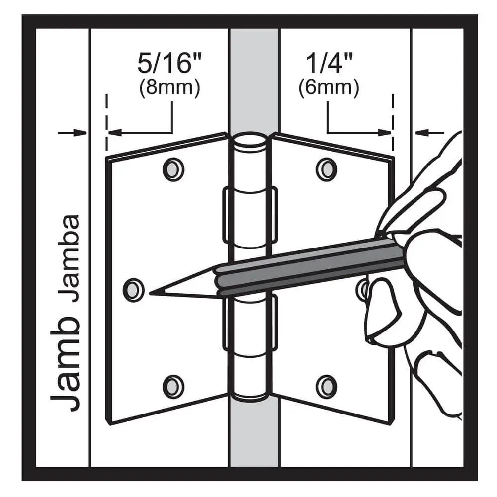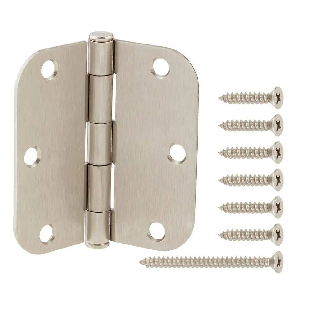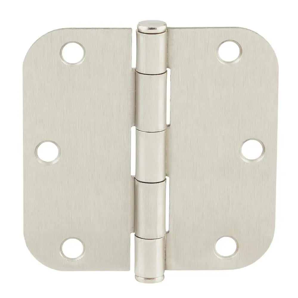 The Everbilt 3-1/2 in. x 5/8 in. Radius Door Hinges (12 per pack) feature a 5-knuckle full mortise design. The removable pin allows for easier installation or removal of the door. These hinges are simple to install.
