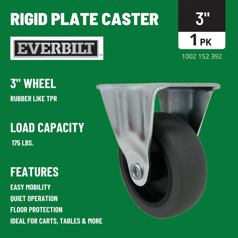 The 3 in. rigid, non-marking rubber caster is built for daily residential use as well as for applications in labs, hospitals, food service, and other institutional settings. Its non-marking rubber ensures a durable yet smooth ride, while resisting chemical and solvent exposure. Each caster has a load rating of 175 lbs.